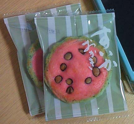 ふっふっふっ… お中元カタログで目にしてから気になって仕方が無かった『すいかおかき』をGETして来たっすよ!