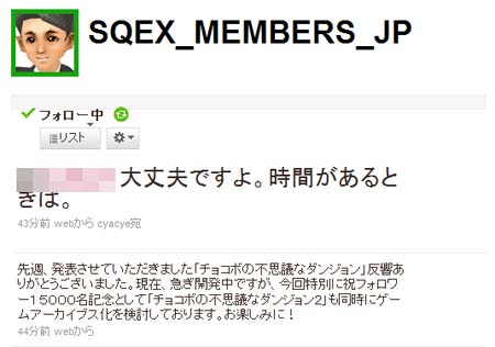 ←みたいに松野氏と坂口氏のやりとりが見れたり、崎元氏がいきなり「クポー!」って叫んでたり、4戦士のマニュアルイラストを描いてる絵師さんを見つけたり、島本さん(熱血漫画家)のツイートで一面埋め尽くされたり(頻繁にあるw)、DQ広報がフォロアー全部をフォローしてて「違ゃう違ゃう! Twitter慣れてへんやろ!」って突っ込みいれたくなったり(w