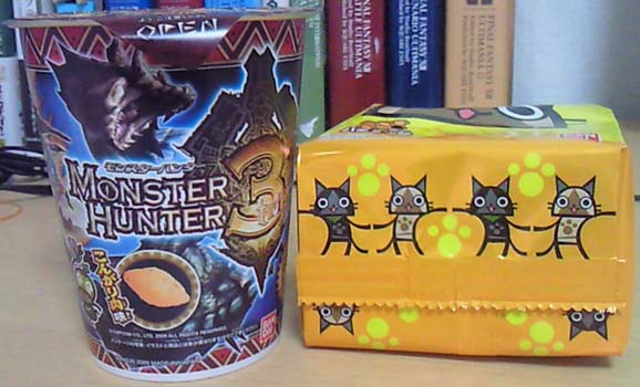 携帯食料スナックはいい年した私みたいなのが買うには抵抗があるけれど(でも買ってる;)、アイルーパッケージは逆に買いやすいかも。