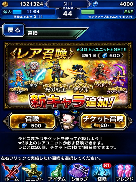 前回のピックアップがセリスとロックと言う、どっちも欲しいキャラだったもんだから、手持ちのチケットを突っ込みまくり、全滅寸前でどうにかGETしたばかり。