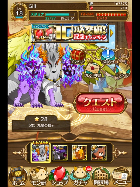 コラボってことで、それぞれのアプリを遊んでLvを上げるなどの目標を達成すると、課金石(金貨)やユニットが貰えるってんで遊んでみたんですよ。