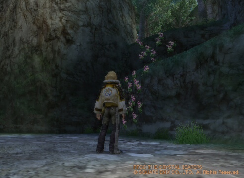 チョコボ馬車→遺跡→出てきた後は、このピンク色の花を目印に上へ登ればOK。