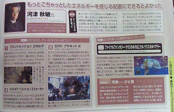 ゲームクリエイター16人に、TGS2009に出展された作品の中で注目している作品についてあげてもらっているって記事で、一人、コンパニオンに言及している河津氏。