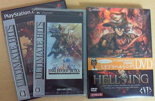 【FF12インターナショナル】と【FFT獅子戦争】のウルティメイトヒッツ版と、衝動的に買った【ヘルシング VI】(DVD版)