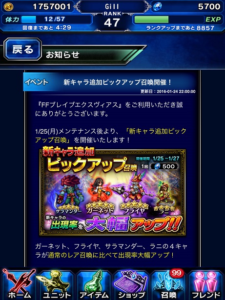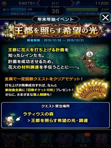 【FFBE】はクリスマスイベントが終わって、今度は年始へ向けてのイベント中。