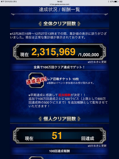 普通ならイベントのお知らせから飛べるのが普通なのに、「MENU→最新/攻略情報→達成状況バナー」で外部サイトへ飛んでやっと見れると言う不親切な作り。