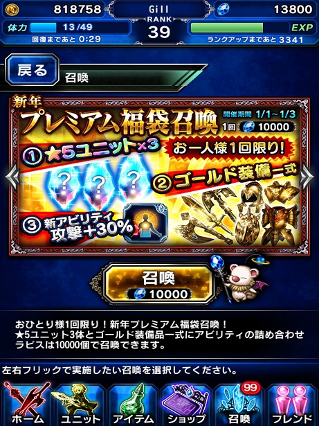 【FFL 時空ノ水晶】でもお正月イベントと福袋ガチャが。