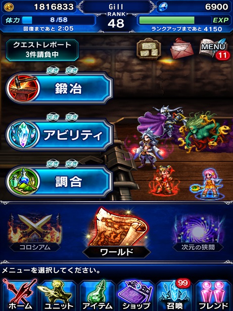 道中の雑魚がユニット進化に使う素材を落とすし、サマサちゃんも神結晶ってのをたまに落とすから、ストーリーがさほど進んでないプレイヤーがいろいろ稼ぐには悪くないステージなんだけれど、サービス開始時から遊んでいるようなプレイヤーには…。