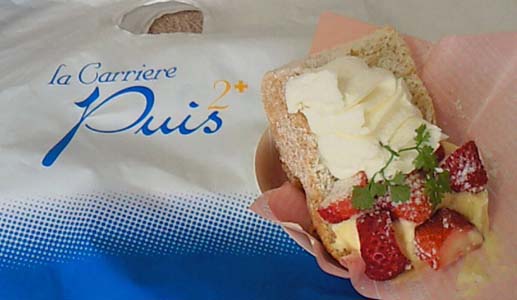 一応、写真は正位置にもどした後だけど、イチゴとクリームが;