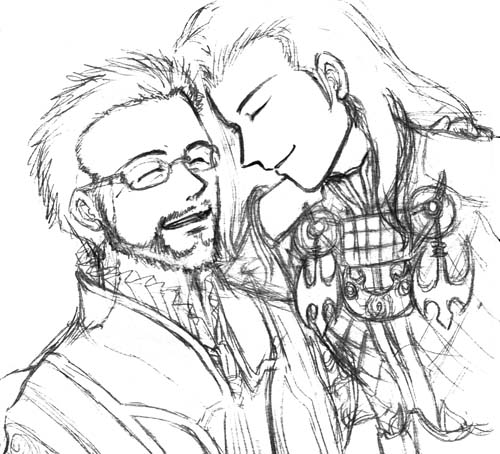 腕を互いの背に回してるって絵にしたかったんだけど、デッサン力が無いので、全然そう見えないのが悲しいなぁ;