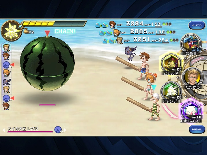 なにせ、敵ボスが「2体 × HPの三分の一~半分ちかく削る全体攻撃 × 3回攻撃」だから、敵の攻撃ターンが2回来たらほぼ全滅すると言う……ヒールしたって焼け石に水とか言いますし orz