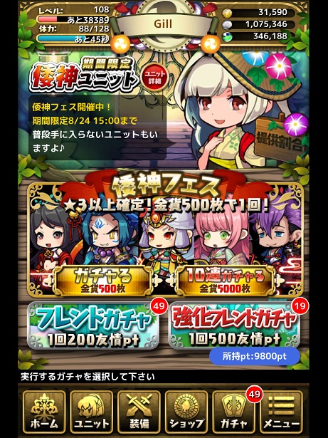 夏祭りイベにあわせて、倭の国の神々5柱がGETできるガチャフェアも始まったので挑戦してみたんっすが……脅威のハズレ率。
