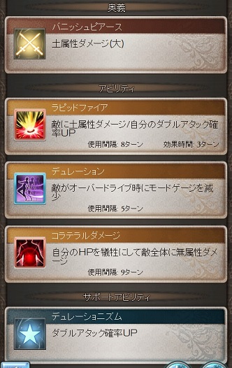 ロゼッタさんは闇で強い(鉄壁&回復系)らしいし、ラカムは5コママンガのノリそのまんまのアビリティで笑かしに来たし、ウェルダーも駄洒落(フォレストレンジャー=森林=樹)と楽しいんだが…。