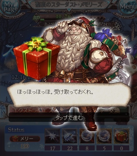 他にストーリーと言えば、イベント導入の「困っているサンタさんに会いました」な話のみ。