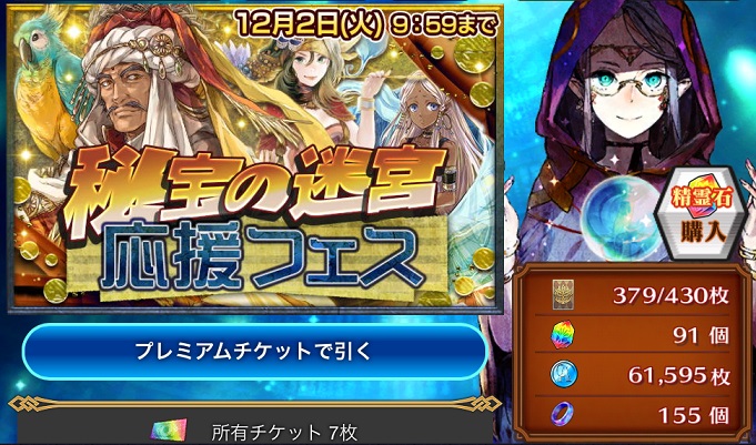 チケット7枚に石が91個あるんでストッパー2回は期待できる…はず。と言うか、ここらは変わってないよね? 完全に浦島太郎モード。