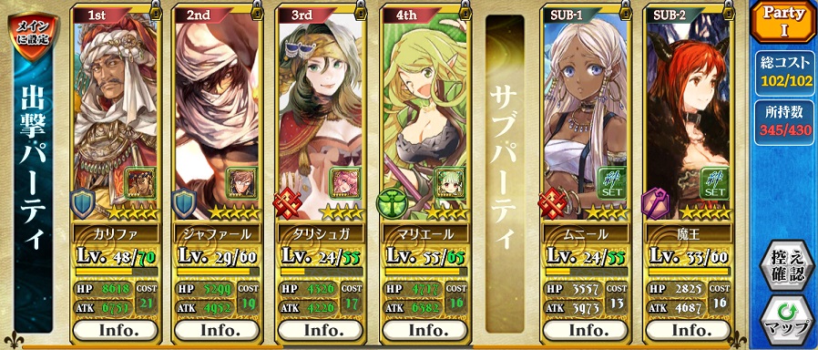 このイベント用特効持ちのカリファとか、盗賊姉さんタリシュガや、ランプの主ムニールとかのシナリオはいい出来だったので、ちょっとばかり期待して進めたんっすが…