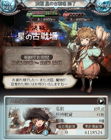 騎空団バトル。運良く(って言ってたら怒られそうだけど;)4勝1敗で商品GETしたですよ。
