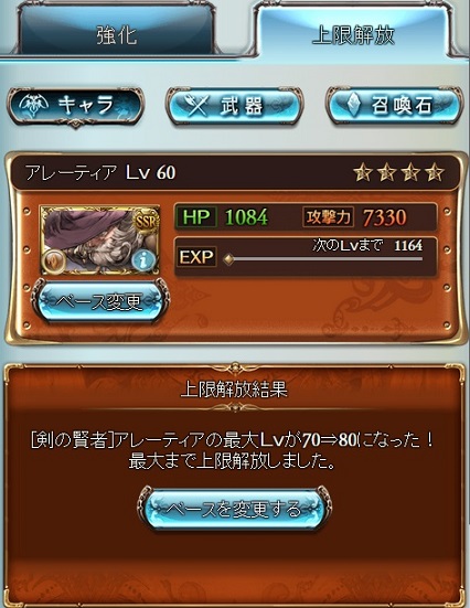 【グラブル】は順調にキャラクターの上限UPが進んどります。
