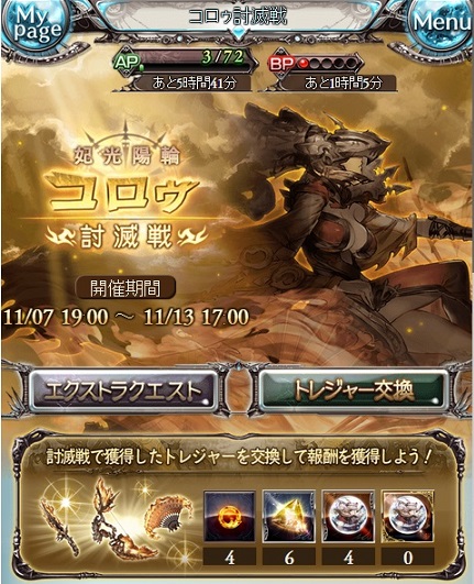 仕方が無いんで、定番になっている討伐イベントと同時に行われている、AP半減イベントを利用してキャラクターの上限突破を目指すことに。
