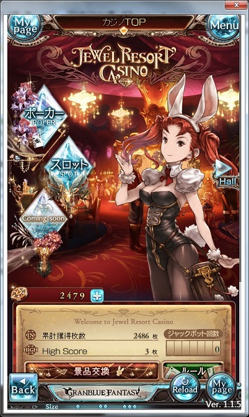 スロットは3ラインしか無いと聴いて挑戦せず、ポーカーはディーラー(AI…じゃなくただのランダムテーブル)とのタイマンな上、高い役を揃えても意味が無く、結局ダブルアップのハイ&ロー勝負なんだけど、それがあまりにもインチキ臭すぎて5回ほど遊んでギブアップ。