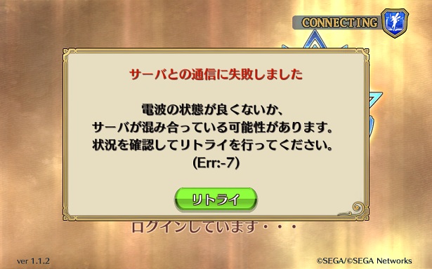 Wi-Fi接続だったからか、リトライ祭りではあったけれどプレイは可能だったし。