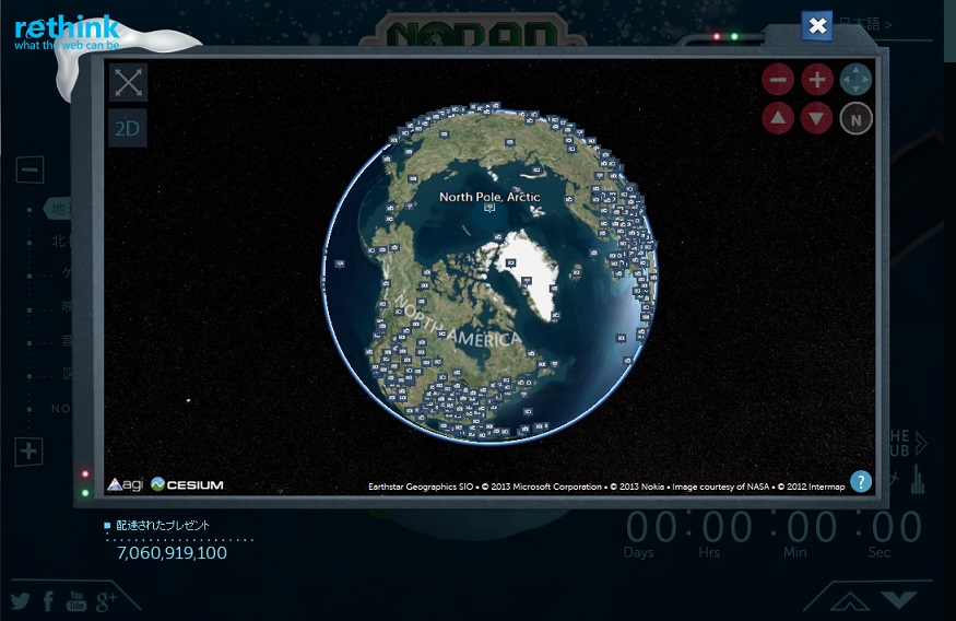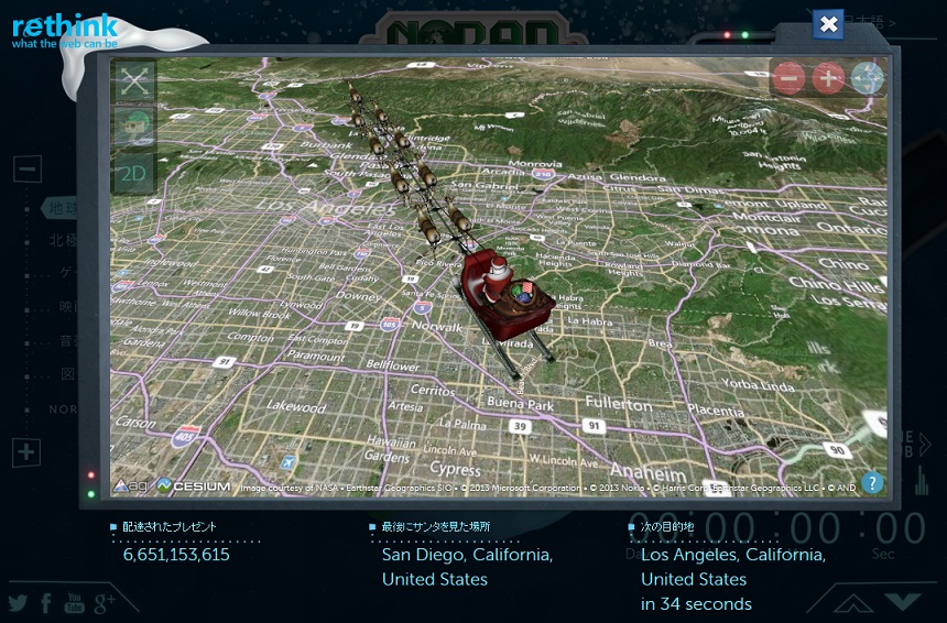 NORADさんとこの超絶技術で行われていたサンタ追跡。開始は遅れたものの無事に完了。