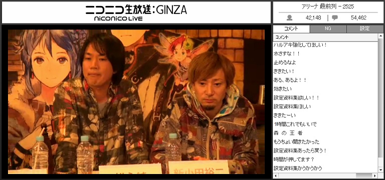 右の画像は「設定資料集なんて需要あるんですかね?」って質問に対して「買う!」とコメントが流れているトコロ。