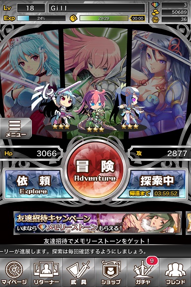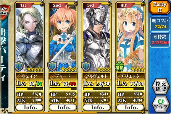 戦闘は面白いんだけどねぇ……でもそれ止まり。上限突破とか進化がないので、レアリティの低いキャラは弱いまま(一部の良スキル持ちはマシだけれど…)なのもなぁ。