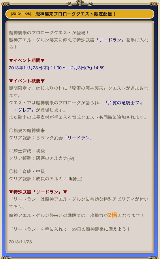 なにしろ29日からのレイドが、あのコロパティオン襲来で悪夢を見せられた箱ドロップシステムのまんま?みたいだってのと、特効武器をまた出してきたってのがなぁ…。