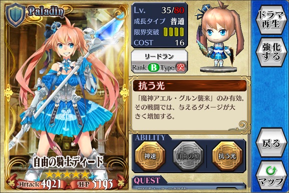 SSRだからステータスは良いんだろうけれど、アビリティは副都のSRアンジェリカの劣化版だそうっす。