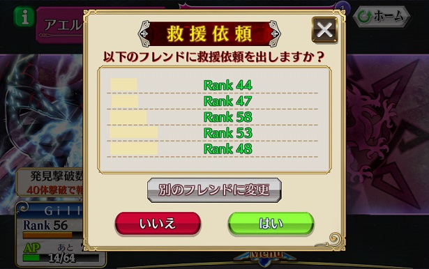 相変わらず救援の告知がサッパリ役に立たないので、貸し出すキャラでしか手助けできん。