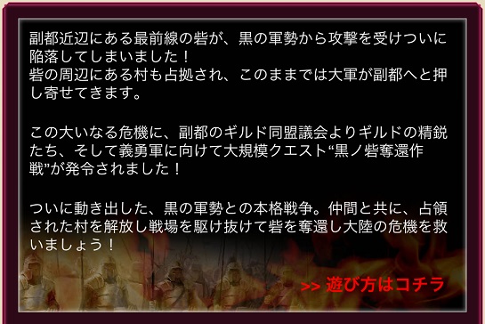 開始前にキャプってあったイベント概要。MAP上の拠点を落として進んでいく形らしくてソレは楽しそうなんだよね。