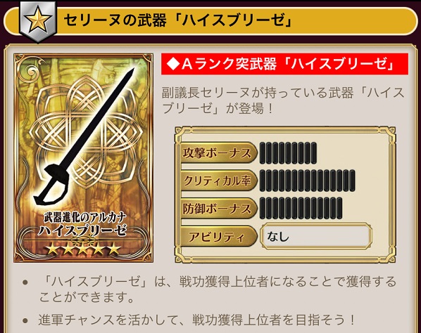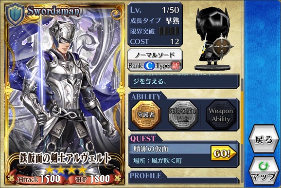 とは言え、このユニットはイベントMAPを全クリアしたら1枚はもらえる。難易度が激ハードでもなけりゃ大丈夫。武器もグリーフソードって1位武器を持ってるならスッパイ葡萄でいい。