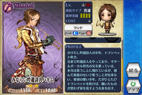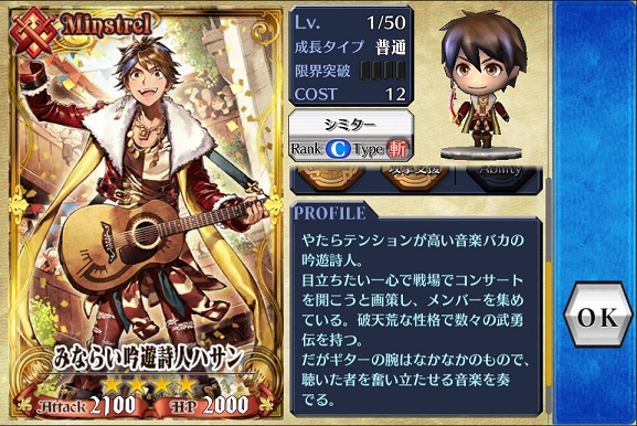 今となってはステータス面では微妙な性能になっちゃっているものの、移動が速く敵をダウンさせるスキルを持っているのでボス戦では有り難いお人。