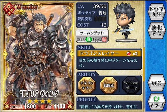 序盤に登場するカードとしては悪くはないし、スキルの突進やアビリティの“鼓舞”も便利なんだけれど、悲しいかな、ガチャやその他の手段では手に入らない only one カードのため、他が育つほどに置いて行かれる切ない運命。