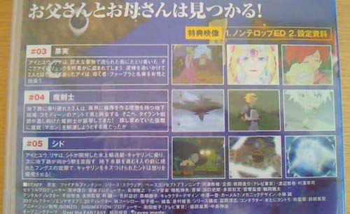 FF:Uは1クール目は見てたんだけれど、お話がダレにダレまくったことや、やっぱりFFは純粋ファンタジー物で映像化して欲しかったってこともあって、2クール目は見なかったんだよなぁ…。