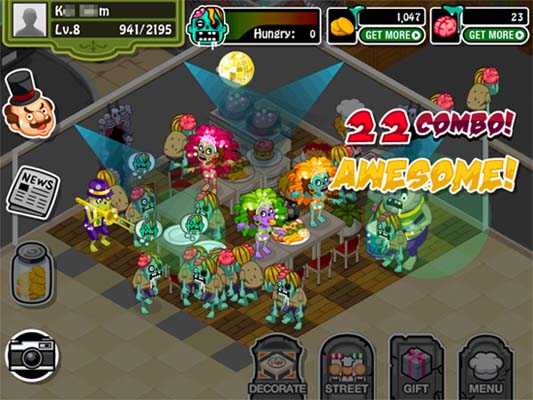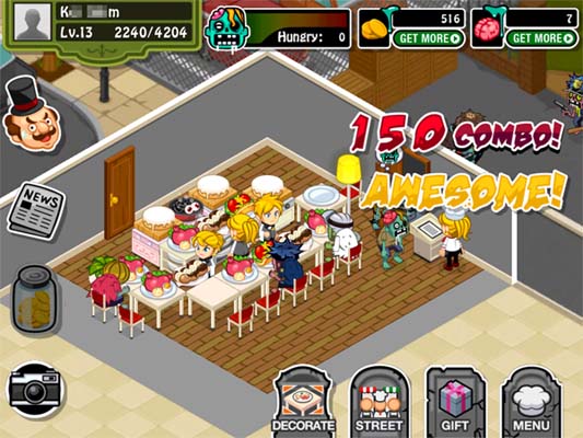 基本はソーシャルゲームに良くあるカフェやレストラン運営と同じなんだけれど、客がいろんなゾンビで料理が不気味だってのが特徴。