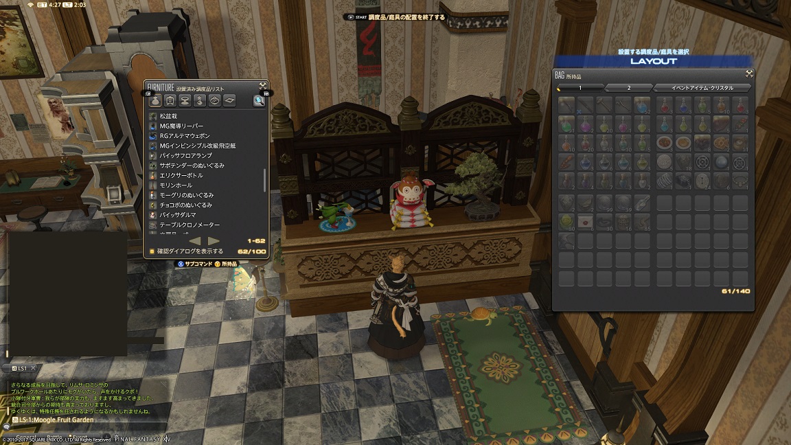 家の引っ越し機能が追加されたら、DQXと同じように家に家具収納スペースがつくらしいのでそれ待ちですなぁ;