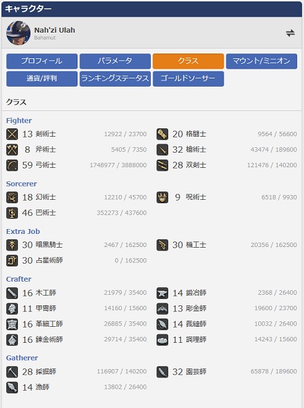 学者が伸びたのと、イシュガルドの3ジョブが加わった程度。