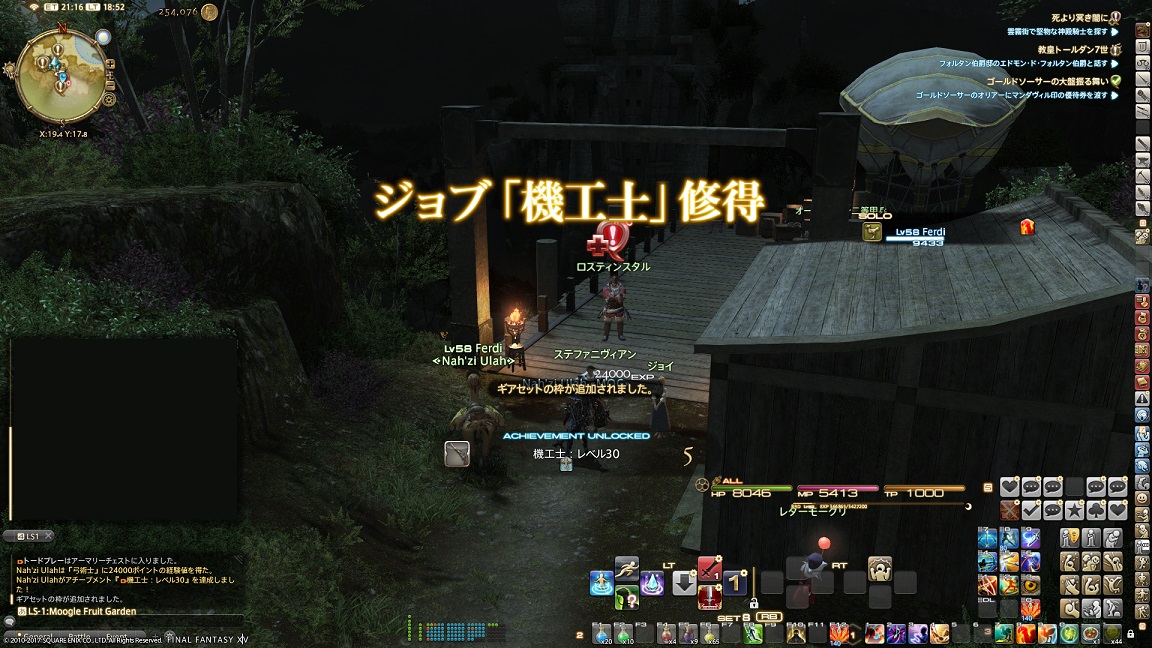 FC&LSの先輩方は新MAPクガネへ行ってしまうだろうから、その間は学者や機工士、手が回るなら槍か双剣を育てるかねぇ。